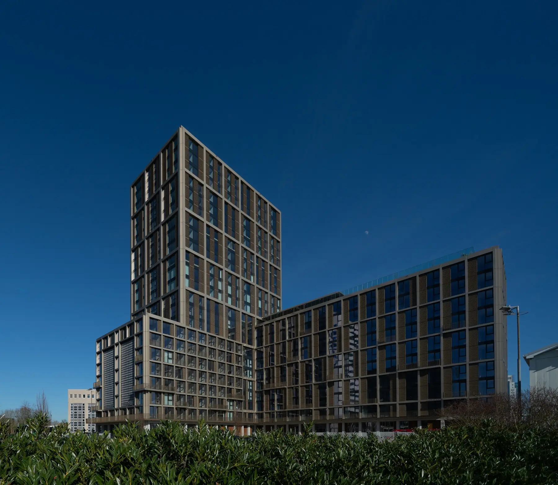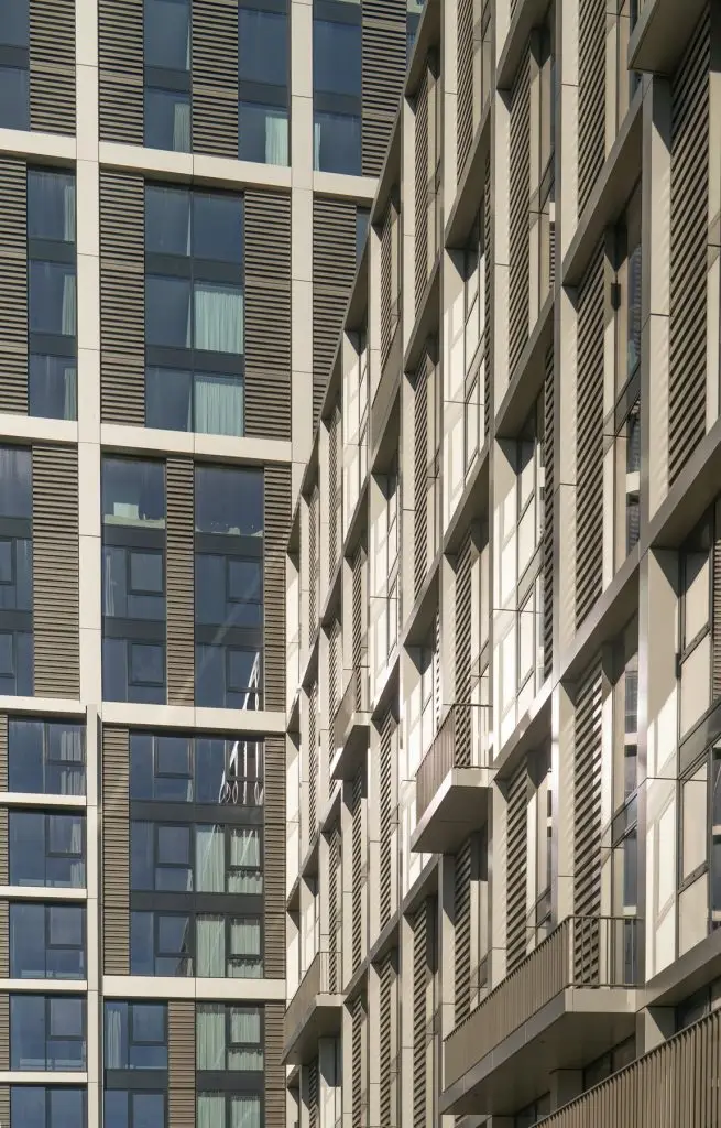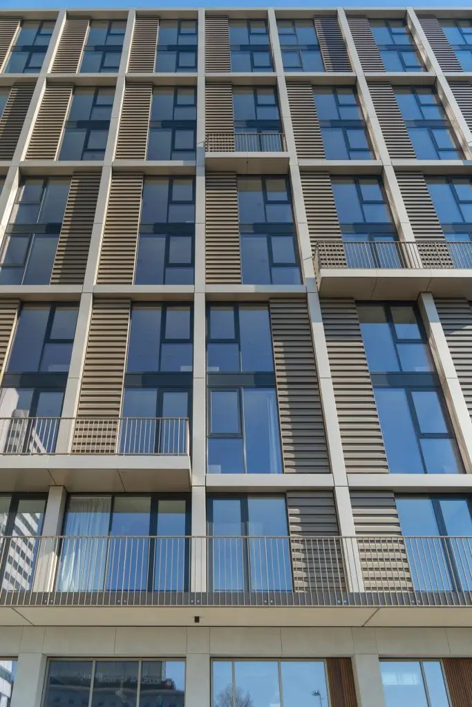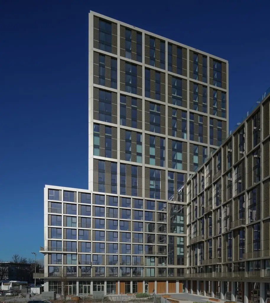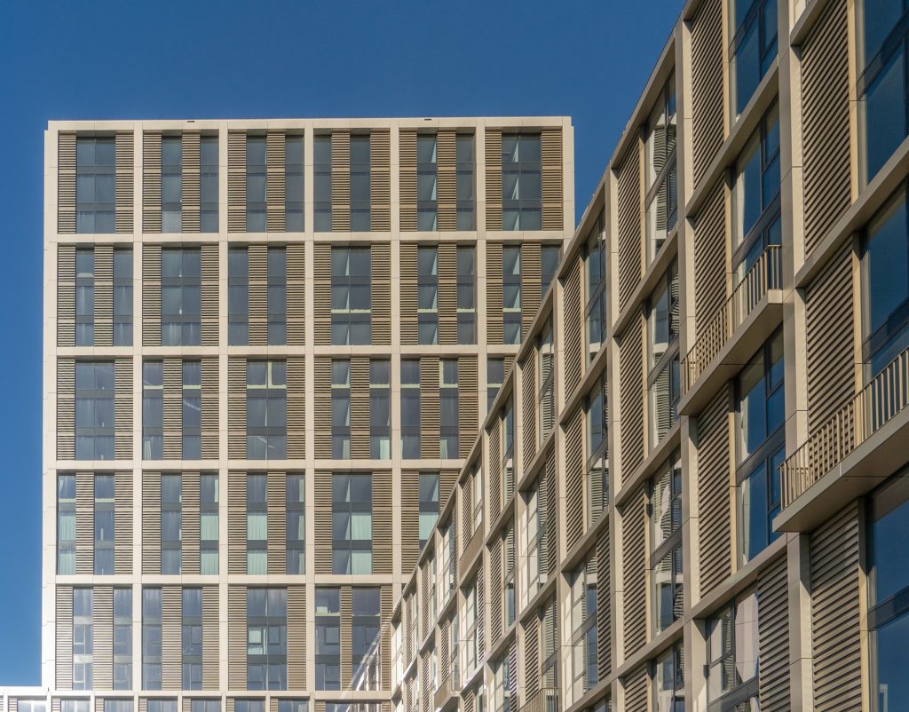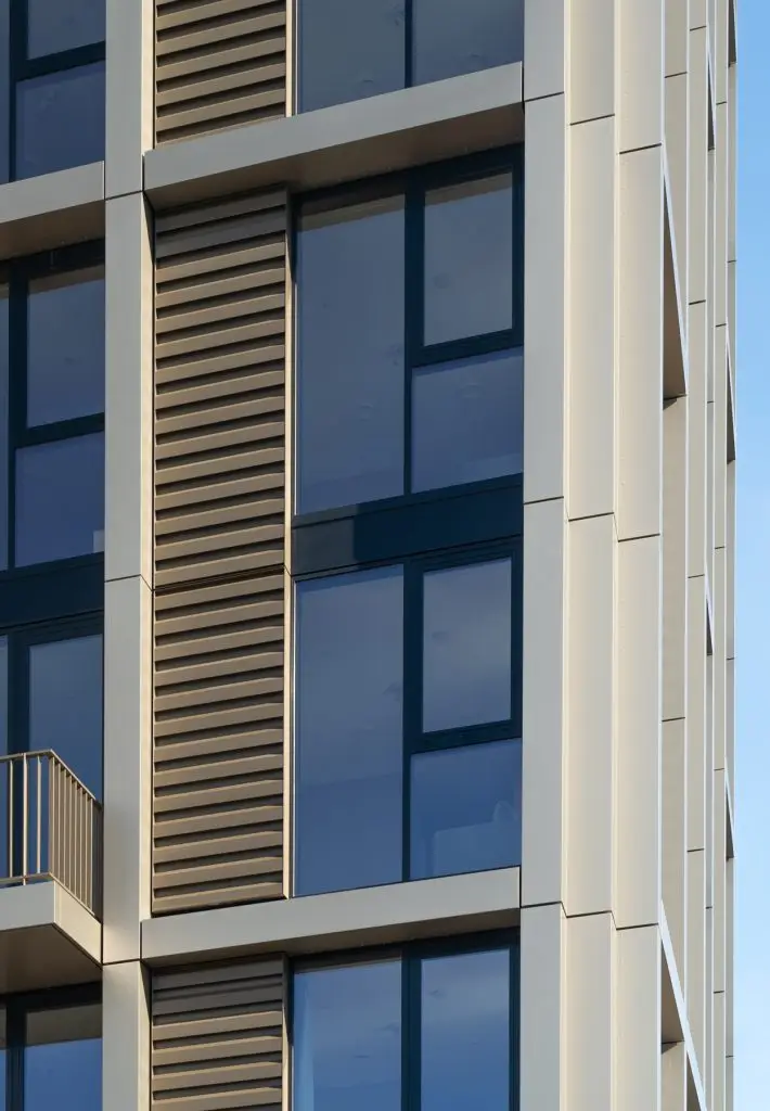 Voor Canvas Living Rotterdam Brainpark realiseerde De Groot & Visser circa 9.500 m² prefab elementgevels met aluminium composietcassettes en geïntegreerde akoestische roosters. Een efficiënte en hoogwaardige geveloplossing voor moderne woningbouw.