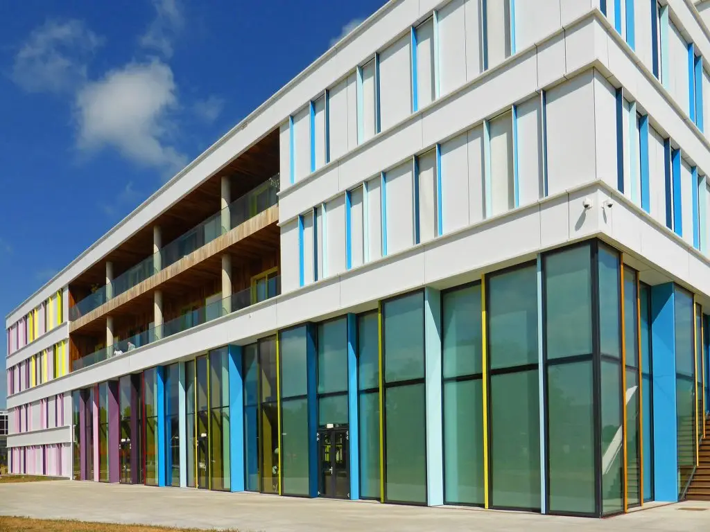 Het Prinses Máxima Centrum is een nieuw nationaal kinderoncologisch centrum in Utrecht en is gebouwd door de combinatie ‘Pro Liberis’. Voor de gevels en zonwering is De Groot & Visser toegevoegd aan het team. De vele, kleurrijke kozijnen in het RT72 systeem van Kawneer en de Schüco FW50 vliesgevels zorgen voor veel daglicht in het centrum. Om de warmte van de zon buiten te houden zijn in totaal 714 zonwerende screens geplaatst. Dochterbedrijf Norwin – inmiddels volledig geïntegreerd in De Groot & Visser – plaatste de hout-aluminium kozijnen.